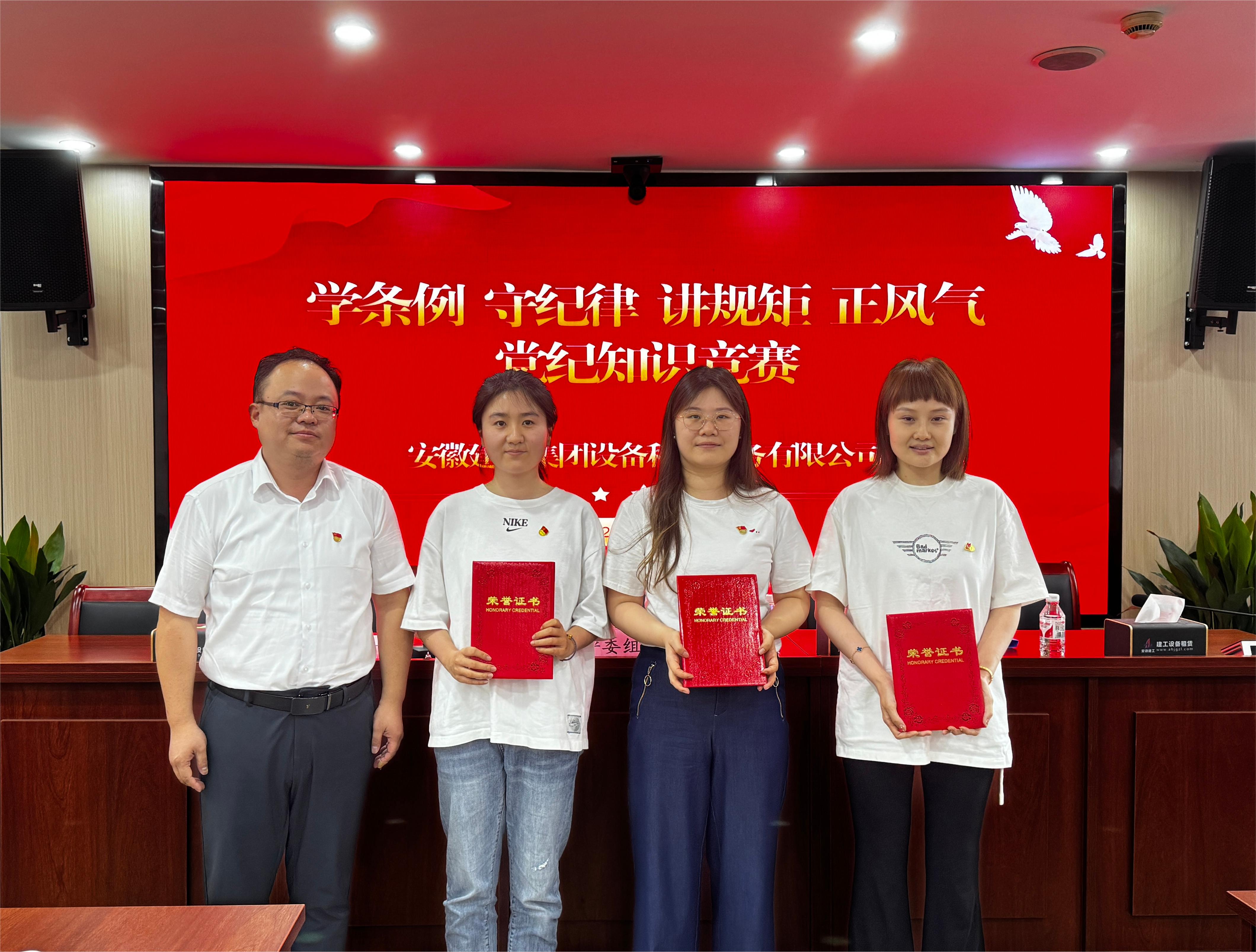 為持續(xù)深入推進(jìn)黨紀(jì)學(xué)習(xí)教育工作,6月20日,建工設(shè)備租賃公司黨委舉辦了“學(xué)條例 守紀(jì)律 講規(guī)矩 正風(fēng)氣”黨紀(jì)知識(shí)競(jìng)賽活動(dòng),公司黨委委員、副總經(jīng)理、總工程師陳琪,黨群工作部(人力資源部)部長(zhǎng)肖偉、生產(chǎn)管理中心副主任梅嶺應(yīng)邀參加并擔(dān)任競(jìng)賽評(píng)委,機(jī)關(guān)負(fù)責(zé)人、部分黨員現(xiàn)場(chǎng)觀賽。