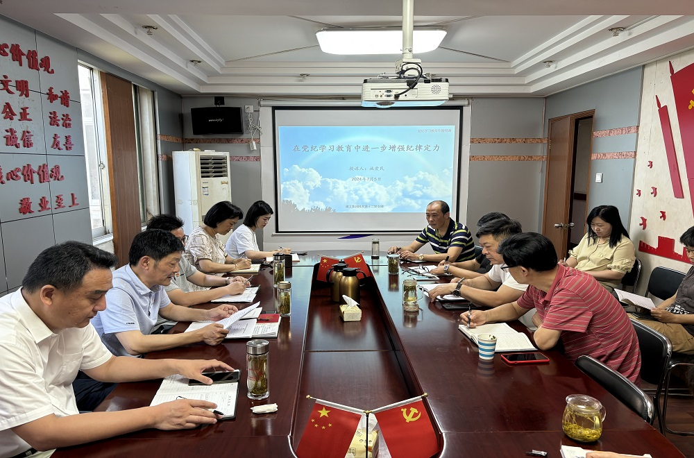 7月5日上午,集團(tuán)機(jī)關(guān)第十二黨支部召開(kāi)黨員大會(huì)。支部書(shū)記施愛(ài)民以《在黨紀(jì)學(xué)習(xí)教育中進(jìn)一步增強(qiáng)紀(jì)律定力》為題,為全體黨員進(jìn)行授課。