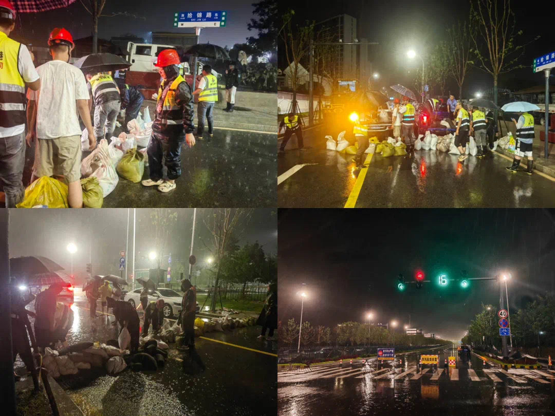 在接到合肥市暴雨預(yù)警信號(hào)后,市政分公司淮桐03標(biāo)、文忠路項(xiàng)目夜間組織青年突擊隊(duì)趕赴金寨南路項(xiàng)目參與搶險(xiǎn)救災(zāi)。在暴雨中,團(tuán)員青年們裝填沙袋、抽排積水、疏導(dǎo)交通,織密生命財(cái)產(chǎn)“安全網(wǎng)”,力爭將暴雨帶來的損失降到最低。經(jīng)過10個(gè)小時(shí)奮戰(zhàn),金寨南路項(xiàng)目積水清理完畢,為廣大市民安全出行提供了保障。在這場防汛救災(zāi)行動(dòng)中,團(tuán)員青年們不畏艱難,吹響了青年突擊隊(duì)的“集結(jié)號(hào)”!