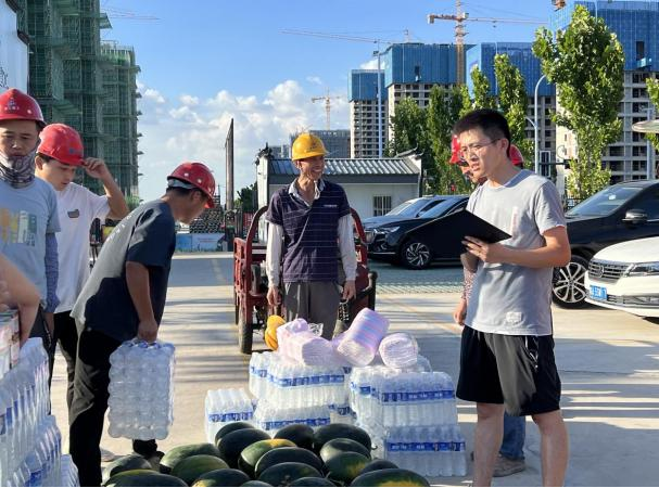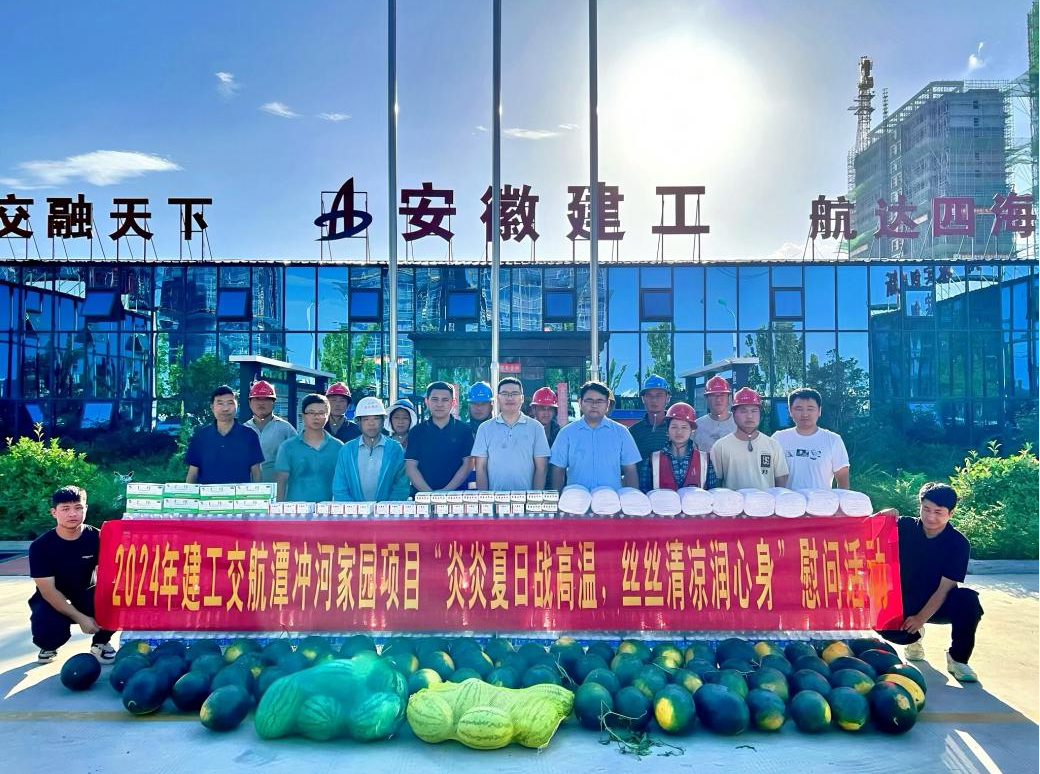 7月25日下午,建工交航潭沖河家園項目聯(lián)合業(yè)主、監(jiān)理單位開展“炎炎夏日戰(zhàn)高溫,絲絲清涼潤心身”慰問活動。