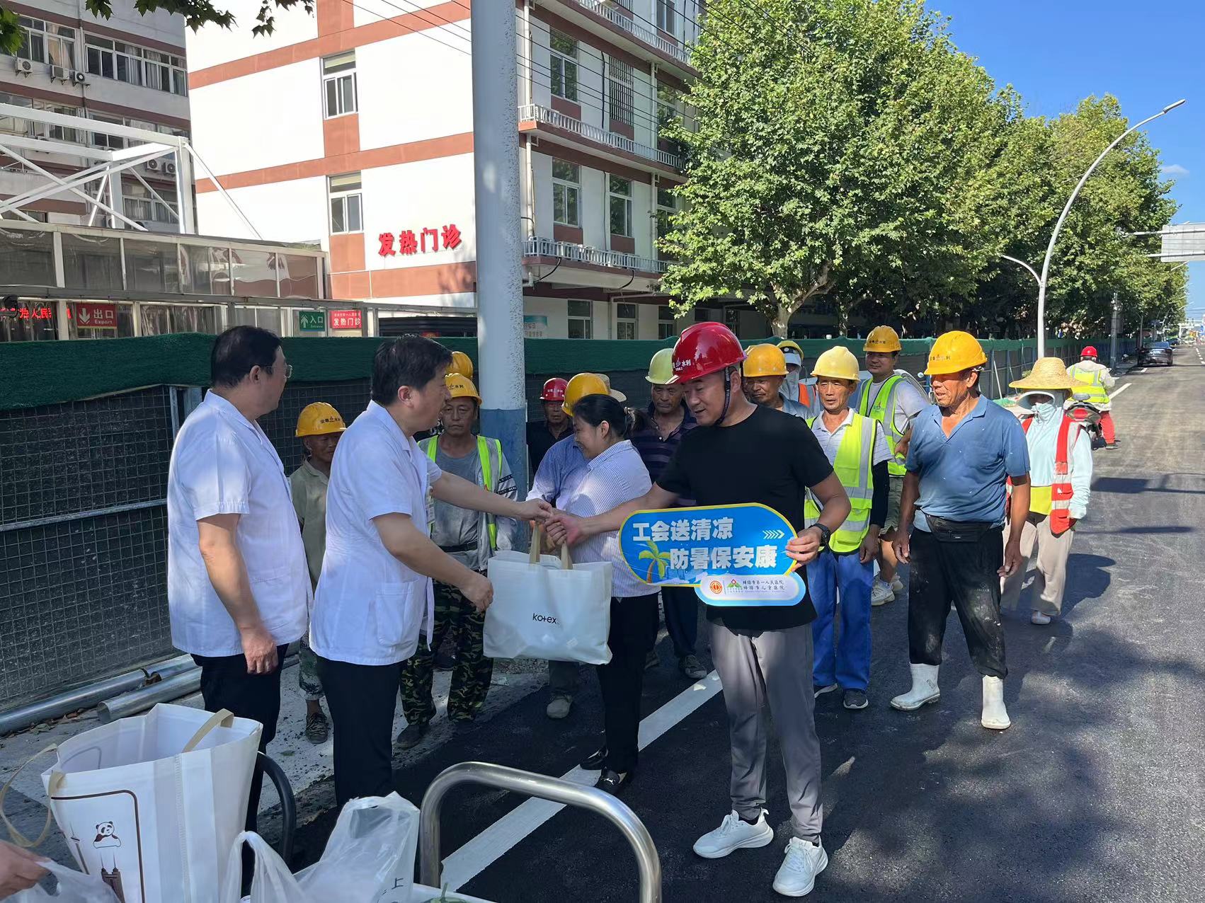 7月29日,蚌埠市第一人民醫(yī)院黨委書記袁長江帶隊到安徽水利蚌埠市城區(qū)道路提升改造項目現(xiàn)場開展“送清涼”慰問活動。