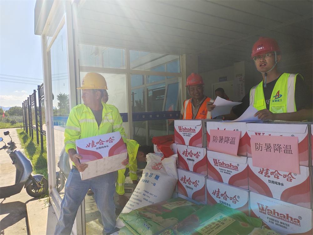 為了確保建筑工人的身體健康和施工安全,項(xiàng)目部高度重視防暑降溫工作,提前制定了詳細(xì)的防暑降溫方案。項(xiàng)目部實(shí)行“抓兩頭、歇中間”的作息制度,讓工人們能夠在相對(duì)涼爽的時(shí)間段進(jìn)行作業(yè)。在施工現(xiàn)場,項(xiàng)目部設(shè)置了多個(gè)防暑降溫休息點(diǎn),配備了充足的飲用水、綠豆湯、西瓜、藿香正氣水等消暑“神器”,保障一線建設(shè)者度過高溫天氣。