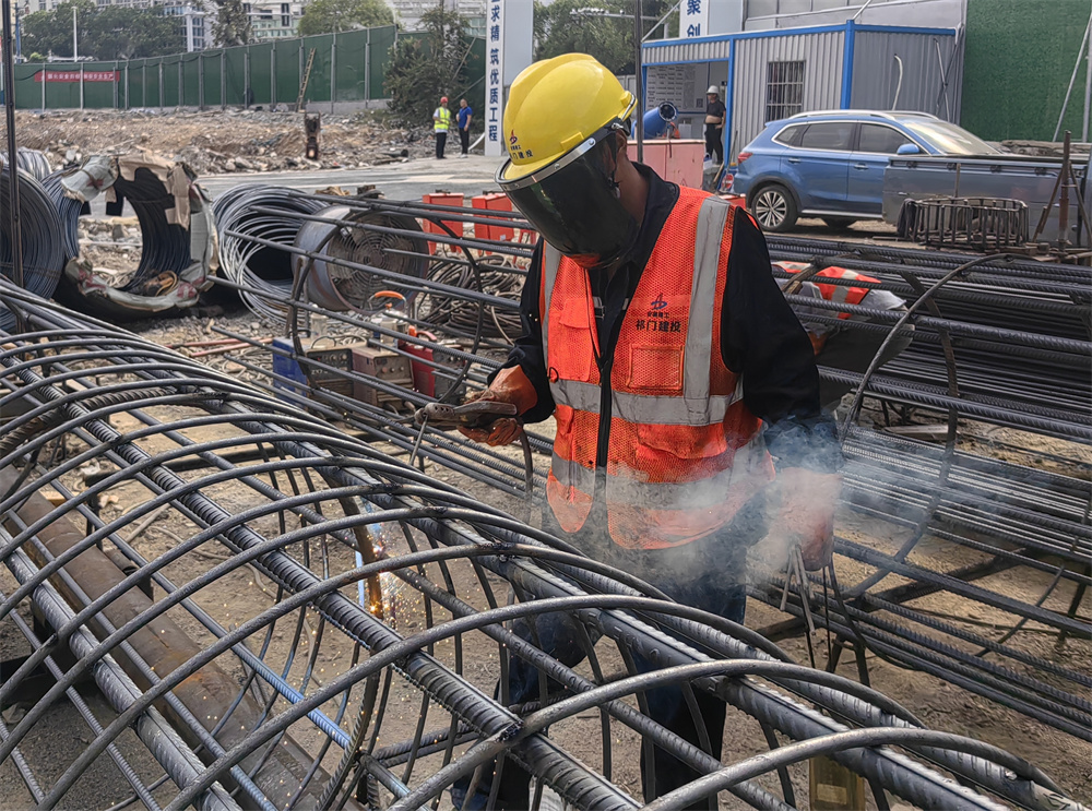 雖正值盛夏酷暑,祁門建投梅城大廈項(xiàng)目及低碳科創(chuàng)園項(xiàng)目的建設(shè)現(xiàn)場依然熱火朝天。頭戴黃色安全帽的鋼筋工人,戴著面罩及厚厚的手套,即使經(jīng)受著高溫天氣和焊接火星的雙重夾擊,仍沒有一絲懈怠,全神貫注地焊著手中的鋼筋籠。熱浪中,工人們身上的衣服已是濕了又干、干了又濕,但手中的工作沒有絲毫的懈怠和疏忽,用頑強(qiáng)的毅力和不屈的精神對(duì)抗著高溫的侵襲。