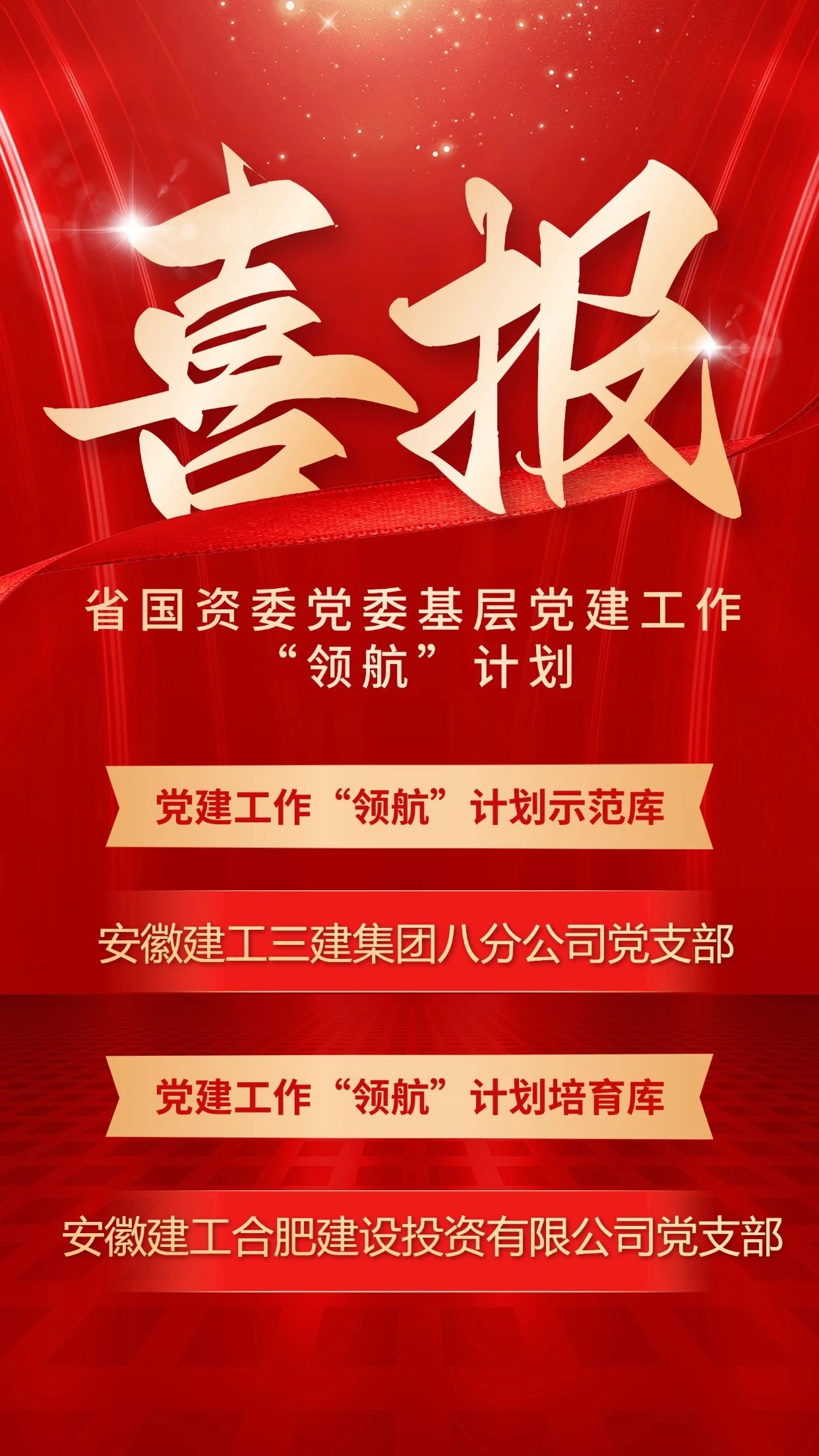 近日,省國資委黨委通報2024年第三季度基層黨建工作“領航”計劃入庫情況,安徽建工三建集團八分公司黨支部和安徽建工合肥建設投資有限公司黨支部分別入選省國資委黨委基層黨建工作“領航”計劃示范庫和培育庫。至此,安徽建工集團共有4個基層黨組織入選省國資委黨委示范庫,1個基層黨組織入選省國資委黨委培育庫。