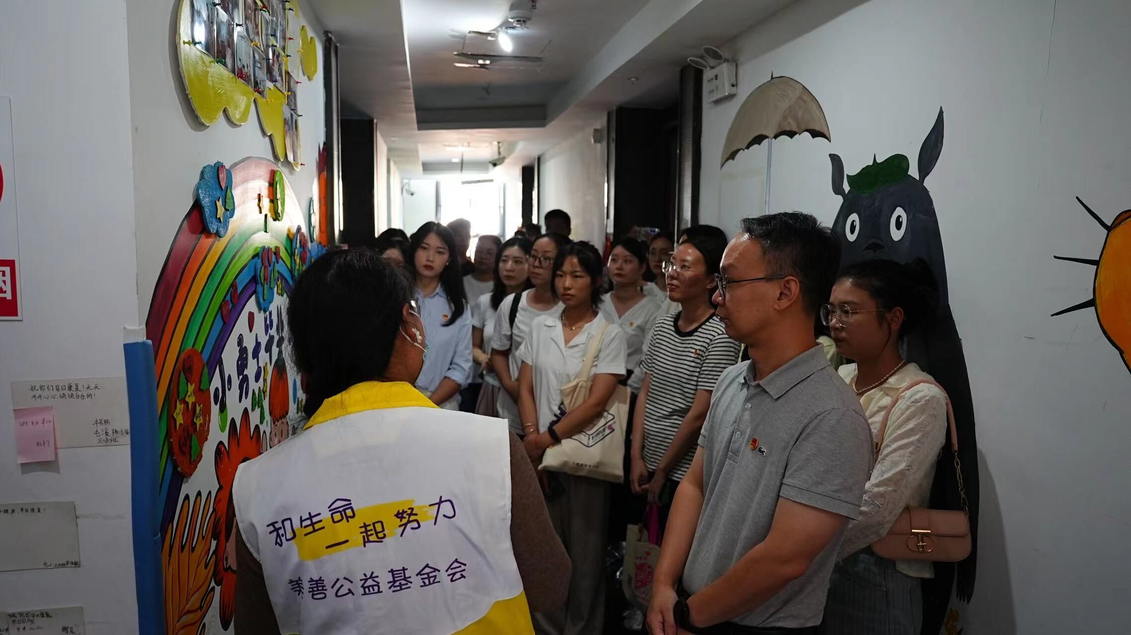 9月27日下午,來(lái)自所屬各基層團(tuán)組織的30余名青年志愿者來(lái)到“口罩天使愛(ài)心小屋”看望患癌兒童,現(xiàn)場(chǎng)捐贈(zèng)愛(ài)心善款和愛(ài)心物資?;顒?dòng)中,項(xiàng)目工作人員帶領(lǐng)志愿者們參觀了宿舍、廚房、多媒體活動(dòng)室等生活空間,介紹了項(xiàng)目基本情況?!翱谡痔焓怪型舅奚帷庇址Q“愛(ài)心小屋”,是常年服務(wù)癌癥患兒的公益項(xiàng)目,專門(mén)為外地來(lái)合肥就醫(yī)的癌癥兒童家庭提供免費(fèi)住宿和關(guān)懷活動(dòng)等服務(wù)場(chǎng)所。