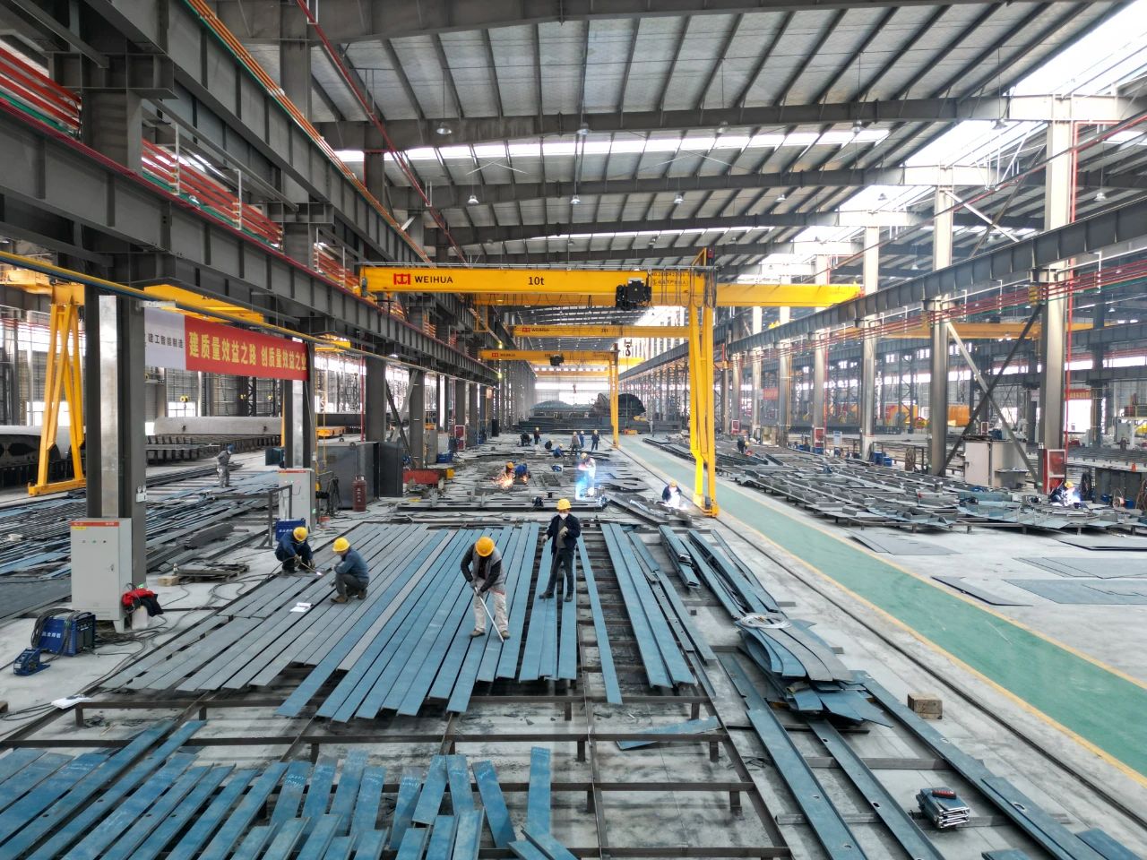 為積極響應集團轉型發(fā)展的戰(zhàn)略號召,建工智能制造積極拓展業(yè)務領域,與蕪湖造船廠簽訂戰(zhàn)略合作協(xié)議。新春伊始,蕪湖公司造船車間一番繁忙景象。當前正在進行“18522”船舷側分段及縱、橫槽壁的大組件組裝,“18523”船的舷側分段的小組件加工及“6608”船的舷側、機艙分段的下料加工,以“拉滿弓、繃滿弦”的狀態(tài)準備全負荷沖刺“開門紅”!2025年建工智能制造將加速拓展造船業(yè)市場,延伸產(chǎn)業(yè)鏈,為開啟百億制造產(chǎn)業(yè)建設新征程貢獻力量!