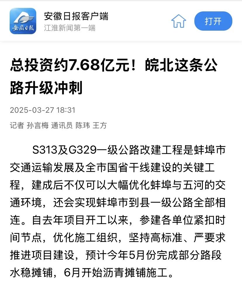 建工水利承建的S313及G329一級(jí)公路改建工程建設(shè)穩(wěn)步推進(jìn),預(yù)計(jì)今年5月份完成部分路段水穩(wěn)攤鋪,6月開始瀝青攤鋪施工。工程建成后不僅可以大幅優(yōu)化蚌埠與五河的交通環(huán)境,還會(huì)實(shí)現(xiàn)蚌埠市到縣一級(jí)公路全部相連。