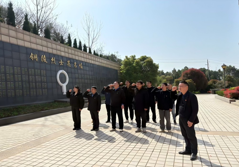 全體參與人員身著黑色上衣,列隊(duì)前往烈士紀(jì)念塔敬獻(xiàn)鮮花,集體默哀致敬。隨后,我們移步烈士陵園,在黨旗下重溫入黨誓詞,鏗鏘誓言回蕩于蒼松翠柏之間,彰顯新時(shí)代黨員的堅(jiān)定信念。最后,在烈士紀(jì)念館中,我們跟隨講解員回顧銅陵地區(qū)革命斗爭(zhēng)歷史,通過珍貴文物和影像資料深切感悟先烈英勇無畏的奉獻(xiàn)精神。