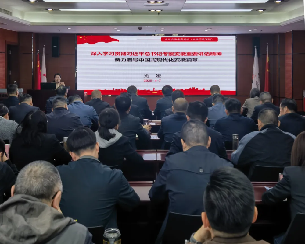 隨后,光婭教授以《深入學(xué)習(xí)貫徹習(xí)近平總書記考察安徽重要講話精神 奮力譜寫中國式現(xiàn)代化安徽篇章》為題,系統(tǒng)梳理了黨的十八大以來習(xí)近平總書記關(guān)于安徽工作的重要講話指示批示精神,從勇?lián)哔|(zhì)量發(fā)展新使命、把握高質(zhì)量發(fā)展新形勢、繪就高質(zhì)量發(fā)展新藍(lán)圖、開啟高質(zhì)量發(fā)展新征程四個方面進(jìn)行深入解讀,內(nèi)容詳實、邏輯嚴(yán)密、事例鮮活,對與會人員學(xué)習(xí)貫徹習(xí)近平總書記考察安徽重要講話精神具有很強的啟發(fā)和指導(dǎo)意義。