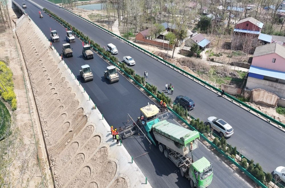 項目全長約20.06公里,按雙向四車道高速公路標(biāo)準(zhǔn)建設(shè),設(shè)計時速120公里/小時,主線及匝道路面采用瀝青混凝土結(jié)構(gòu)。項目部嚴(yán)格落實“品質(zhì)工程”要求,引入智能攤鋪監(jiān)控系統(tǒng)、瀝青路面無人碾壓技術(shù)等先進工藝提升了施工安全性與壓實質(zhì)量。堅持以技術(shù)創(chuàng)新推動品質(zhì)工程建設(shè),完成3項科研課題立項。自2024年下半年正式開工以來,全體參建人員以開工即沖刺的決戰(zhàn)姿態(tài),全力拉滿“進度條”,用時6個月完成項目總產(chǎn)值的90%,2024年度超額完成建設(shè)單位勞動競賽目標(biāo),并榮獲建設(shè)單位2024年優(yōu)秀施工單位稱號。