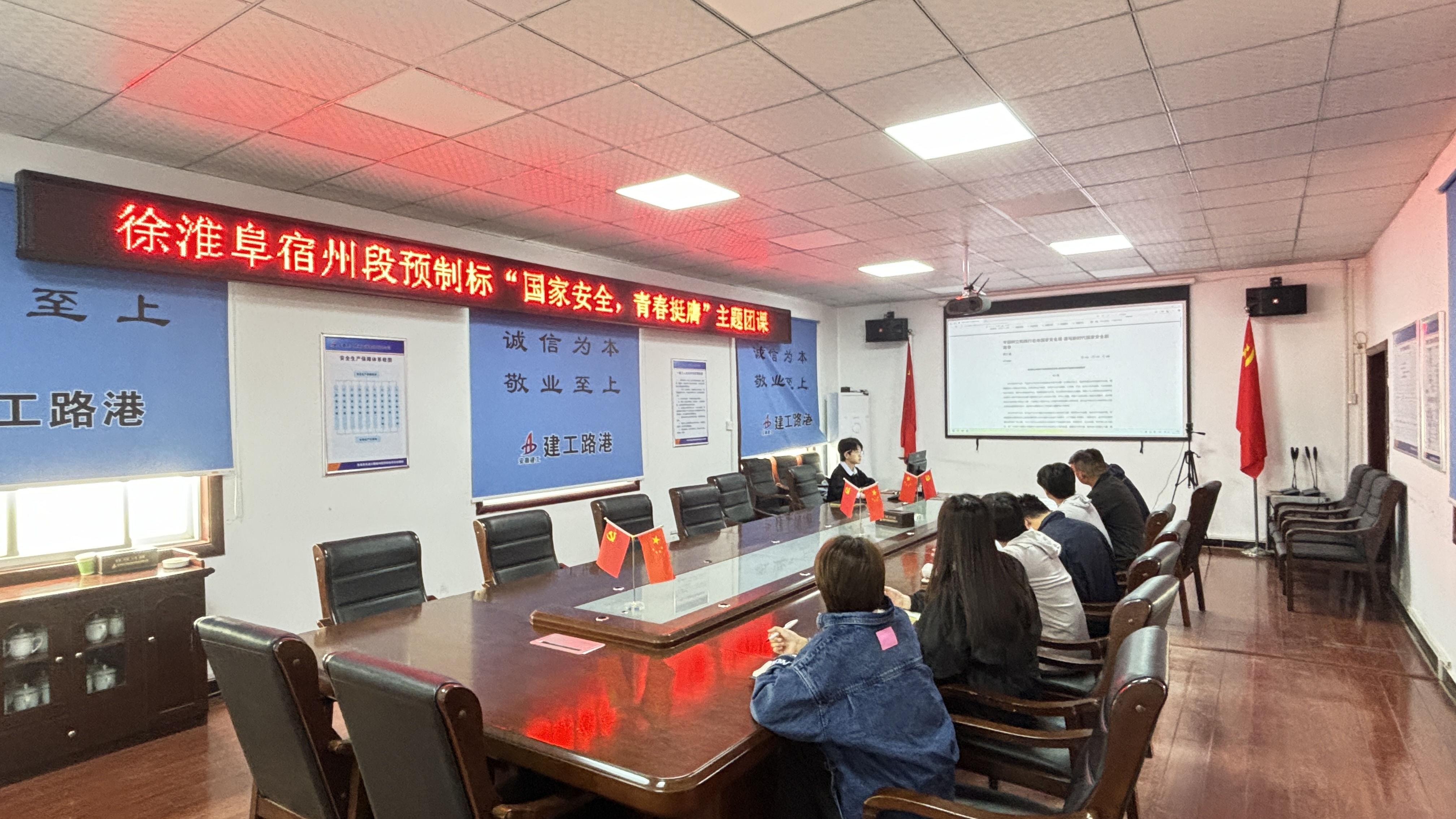 近日,建工路港徐淮阜宿州段預(yù)制標(biāo)項(xiàng)目組織開展“國(guó)家安全 青春挺膺”主題團(tuán)日活動(dòng)。