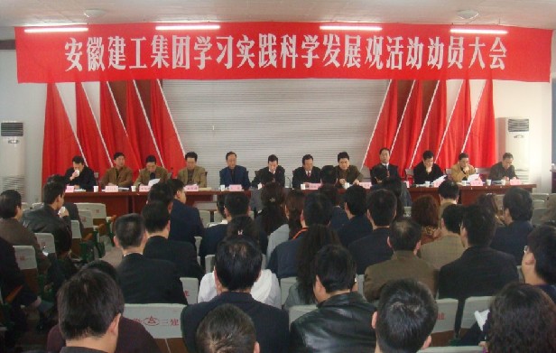3月18日上午,安徽建工集團有限公司召開深入學習實踐科學發(fā)展觀活動動員大會。省屬企業(yè)學習實踐活動第三指導(dǎo)檢查組組長蔣福亮、副組長王健等及省國資委監(jiān)事會第八辦事處主任周勇應(yīng)邀出席大會;集團公司黨政領(lǐng)導(dǎo)班子成員,所屬各單位領(lǐng)導(dǎo)班子成員及有關(guān)部門負責人,集團公司機關(guān)全體黨員參加了會議。集團公司副董事長、學習實踐活動領(lǐng)導(dǎo)小組副組長李長斌主持會議。
