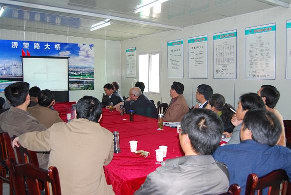 鄭總和戴總對項目部克服場地限制、結(jié)構(gòu)復(fù)雜、技術(shù)難度大等多種不利因素,取得如此的成績感到高興,尤其是看到金桃大橋的雄偉英姿甚感欣慰;同時對項目部積極探索和鉆研技術(shù)難點的精神表示贊賞。并對兩項目下一步施工、質(zhì)量技術(shù)管理工作提出要求,勉勵項目部依靠科學(xué)技術(shù)的支撐,進(jìn)行方案的優(yōu)化,保證安全質(zhì)量,降低工程成本,提高工程的經(jīng)濟和社會效益,進(jìn)一步結(jié)合深入學(xué)習(xí)實踐科學(xué)發(fā)展觀,繼續(xù)開展技術(shù)的開發(fā)挖掘,進(jìn)行技術(shù)的集成創(chuàng)新,研究、提煉項目工法和專利,為集團(tuán)公司技術(shù)創(chuàng)新多做工作,以增強集團(tuán)公司的核心競爭力。