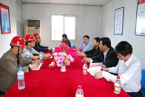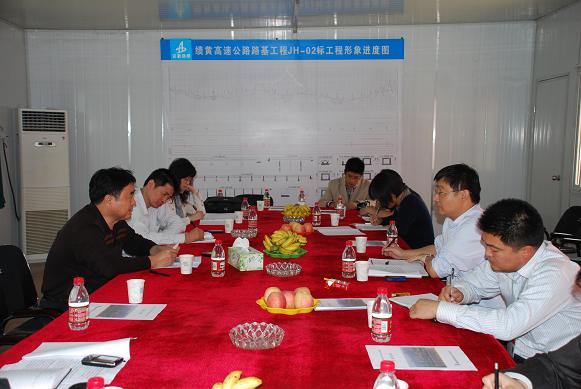 胡董事長(左一)聽取省路橋公司及績黃高速02標項目部工作匯報