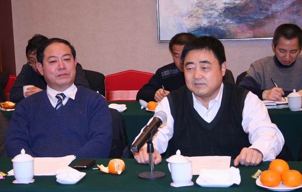 建工集團(tuán)董事會(huì)秘書(shū)徐文聯(lián)(左)和辦公室副主任胡六中(右)分別宣讀《先進(jìn)辦公室、優(yōu)秀辦公室主任評(píng)選辦法》和《辦公室主任聯(lián)席會(huì)議制度》征求意見(jiàn)稿
