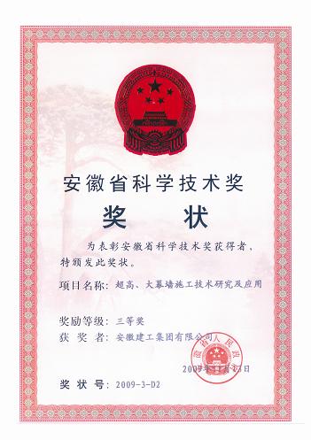 日前,安徽省人民政府發(fā)布2009年度安徽省科學技術獎勵的決定,集團公司系統(tǒng)三個科研項目榮獲“安徽省科學技術獎”三等獎,分別是:“超高、大幕墻施工技術研究及應用”(完成單位:安徽省第一建筑工程公司、安徽建工集團有限公司)、 “60m直徑無中心支承、有側限網殼結構屋面水泥熟料庫關鍵技術應用”和“木質素磺酸鹽改性劑的研究和應用”(完成單位:安徽省建筑科學研究設計院)。